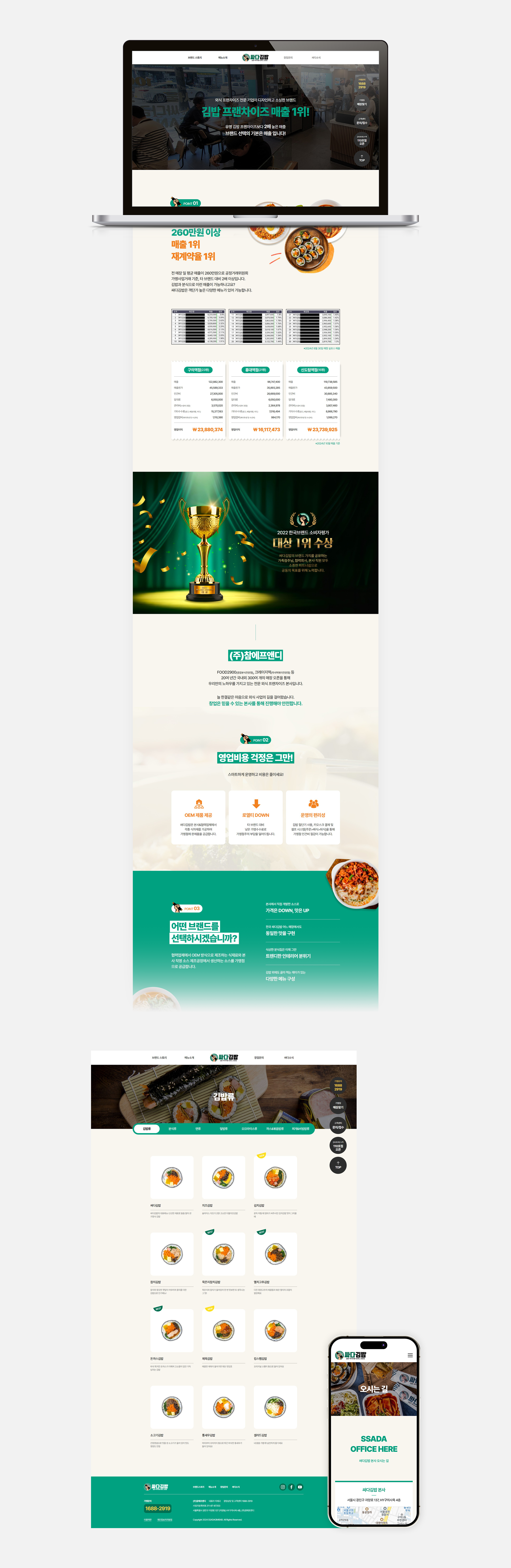 전국 어디서나 볼 수 있는 초록색 인테리어, 분식 브랜드의 패러다임을 깬 트렌디한 컨셉의 싸다김밥!